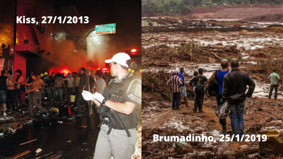 Em Brumadinho, mesmo com a história recente na Barragem de Fundão, da Samarco Mineração S.A., – empresa controlada pela Vale S.A. e pela BHP Billiton, ocorrida em 5 de novembro de 2015, no Município de Mariana (MG), o acionamento de planos de contingência adequados, por parte da Companhia, não aconteceram. Ao contrário da Kiss, o Corpo de Bombeiros de MG deu exemplo de organização, trabalhando diuturnamente, inclusive no período de datas festivas como o Natal, para entregar os corpos para as famílias. Na data que marca um ano da tragédia, 70 membros do Corpo de Bombeiros ainda seguem trabalhando em 14 locais diferentes para encontrar os 11 desaparecidos.